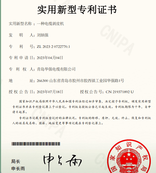 在电力施工、通信敷设及设备制造领域,电缆剥皮工序长期依赖人工或半自动工具,存在效率低、损伤芯线、安全风险高等痛点。青岛华强电缆有限公司凭借深厚的机电一体化研发实力,成功研制出具有完全自主知识产权的“全自动智能电缆剥皮机”,并荣获国家发明专利。该设备不仅通过了ISO 9001质量管理体系与ISO 14001环境管理体系双重认证,更以多项突破性技术,重新定义了电缆剥皮工艺的精度与效率标准。
